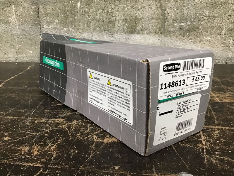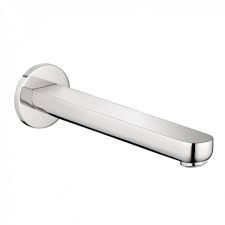 Sleek, stylish Hansgrohe tub spout in chrome. Appears complete and includes owner's manual.