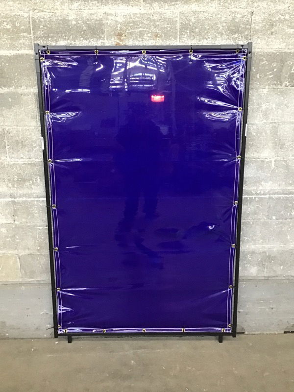 Cool welding screen with a sort of mesmerizing purpley/cobalt color and stretched within a metal frame. Use it for welding or house fashion!