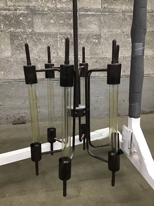 Vividly finished state-of-the-art looking Long Cylinder 6 Light Metal Chandelier reflects Americas fascination with nature. Its vantage design showcases the luminous beauty of lit bulbs.Whether its a bouquet of filaments, this modern, industrial chandelier is an ode to pure, unfettered light.