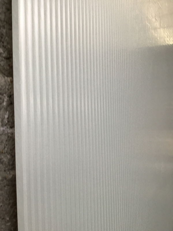 High-end, 1/4" thick acrylic sheet by Lumicor. This particular sheet is clear with wavy grooves on one side, similar to reed glass, and flush with an opaque white finish on the other. Great material for feature walls, entryways, partitions & ceiling features, allowing you to bring a unique style and artistry into any environment! This comes with the factory protective sheet still installed.