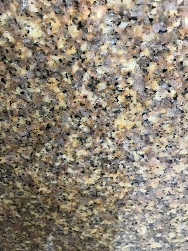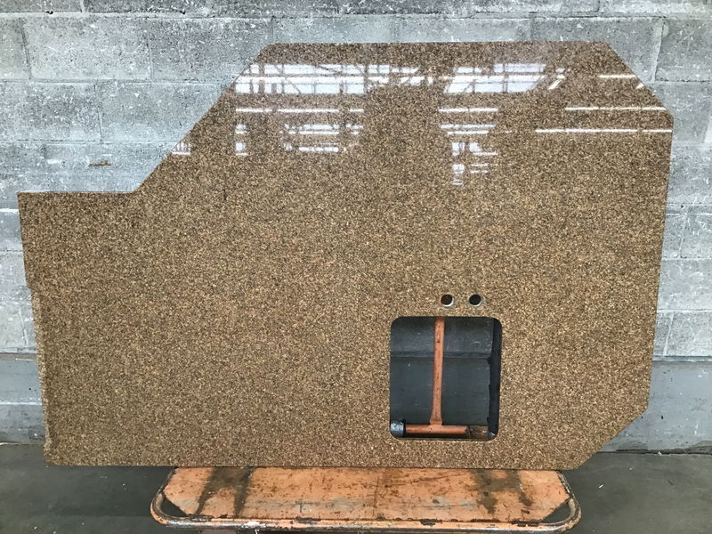 This sizable piece of granite countertop is finished on all but one edge and has a 13.5" x 15.75" bar sink cutout in the center-ish. Width listed is for the widest part, the smaller measures 34.25"W. Price reflects challenge of using this unique piece as well as some chippiness around the edges.