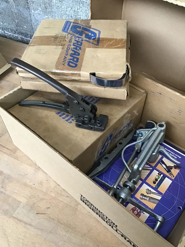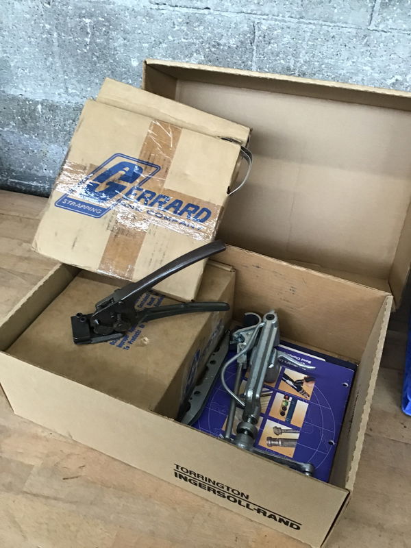 This set comes complete with strapping tool, clips and metals banding. Some wear from storage, but plenty of use left.