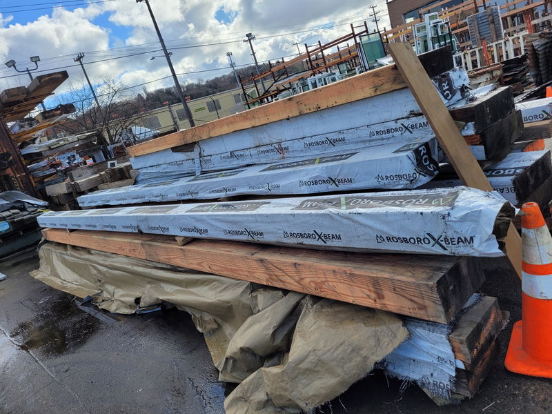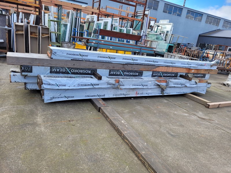 Gluelam beam that has never been installed, but sat on a lumber yard shelf too long for it to be sold as new. It might have seen some weather and could have some discoloration. Some are wrapped yet. Some are not. There could be some scrapes and dings from forklift tips. Looks structurally sound unless something is noted. Photo may be representational. Dimensions may vary up to 1/8" on thickness and height. Length is rounded down to last full inch. We're going to try to track the semi load of glue lams we just took in, but we might not get to all of them. If you're in the market, come on down. They're being priced at $2 per board foot.