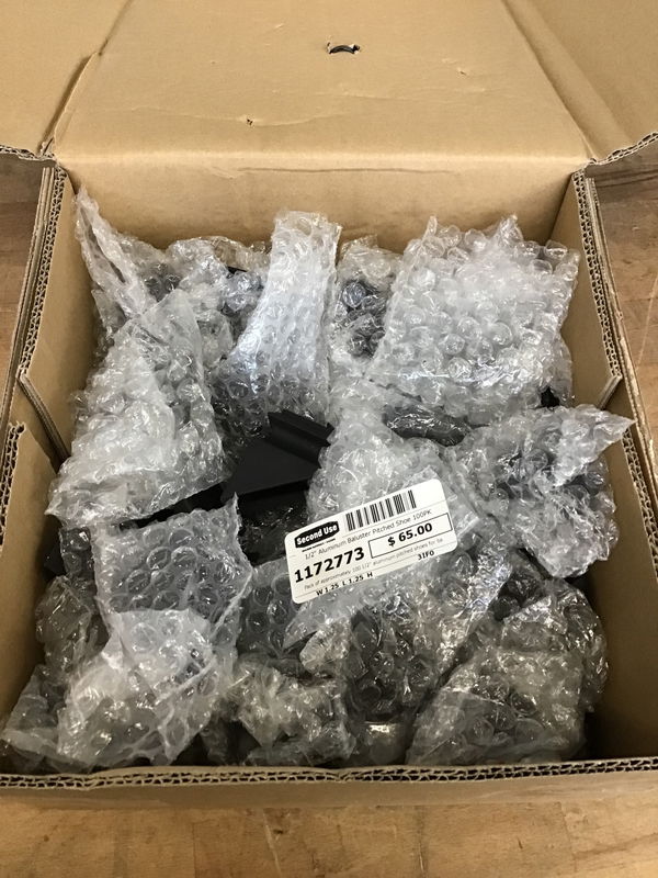 Pack of approximately 100 1/2" aluminum pitched shoes for balusters. We didn't count the total but price reflects potentially less than 100 pieces.