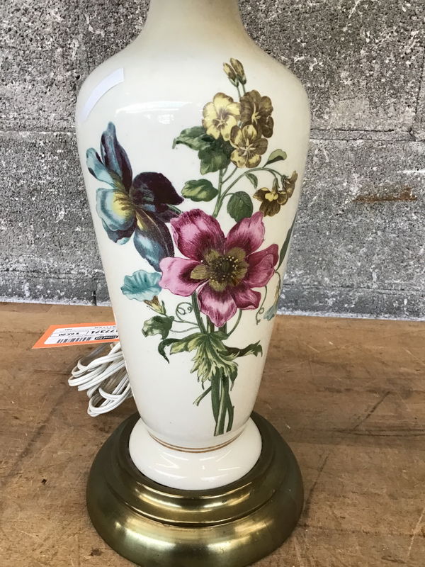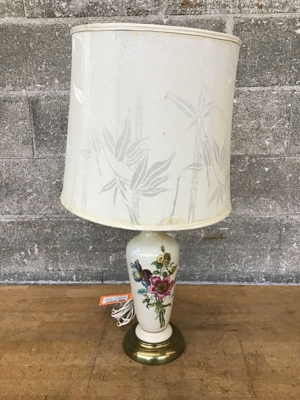 Porcelain desk lamp with really nice flowery theme and cloth shade.