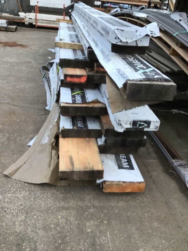 Gluelam beam that has never been installed, but sat on a lumber yard shelf too long for it to be sold as new. It might have seen some weather and could have some discoloration. Some are wrapped yet. Some are not. There could be some scrapes and dings from forklift tips. Looks structurally sound unless something is noted. Photo is probably representational.  Dimensions may vary up to 1/8" on thickness and height. Length is rounded down to last full inch. We're going to try to track the semi load of glue lams we just took in, but we might not get to all of them. If you're in the market, come on down. They're being priced at $2 per board foot.