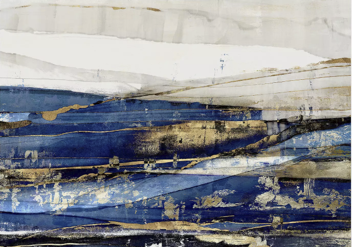 Transform your space with this gorgeous 9' x 12' wall mural from Americanflat with many shades of blue, accented by gold leafing. Includes 6 peel and stick rolls that line up side by side. Covers 120 sq. feet. Retails for $329.