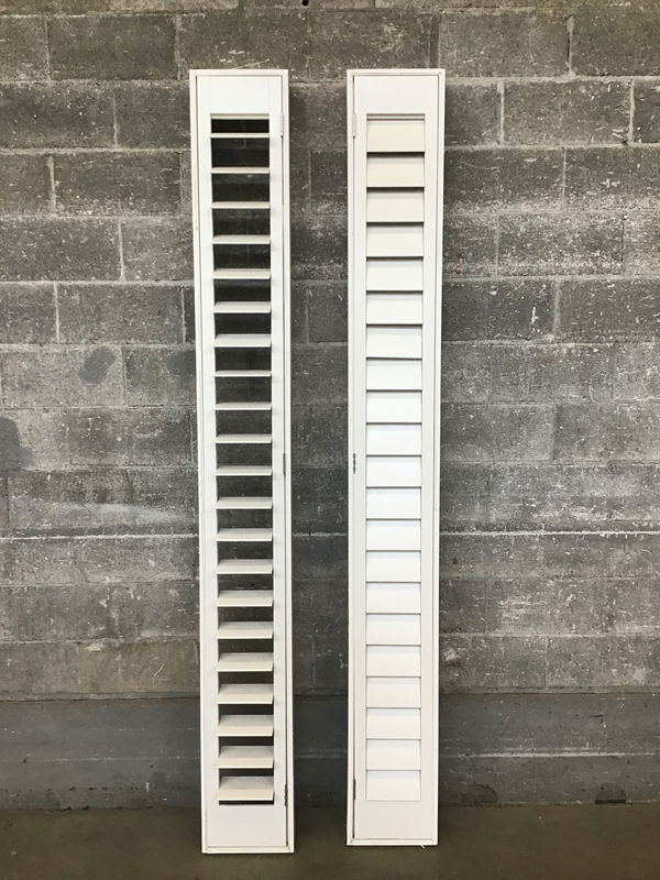 Pair of extra tall louvered interior shutters in a mdf jambs. Both have magnetic catches and operable louvers. Length = Height.