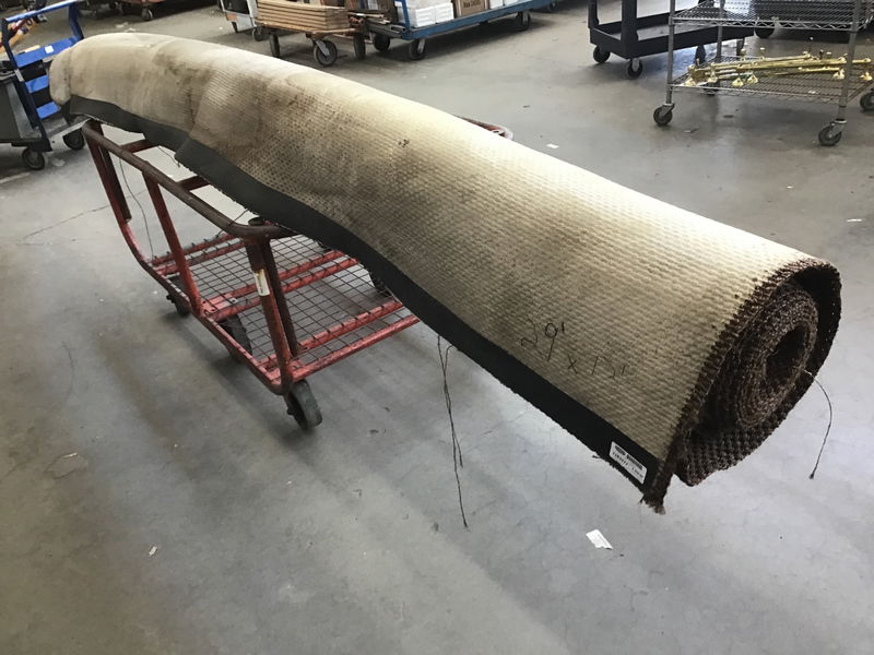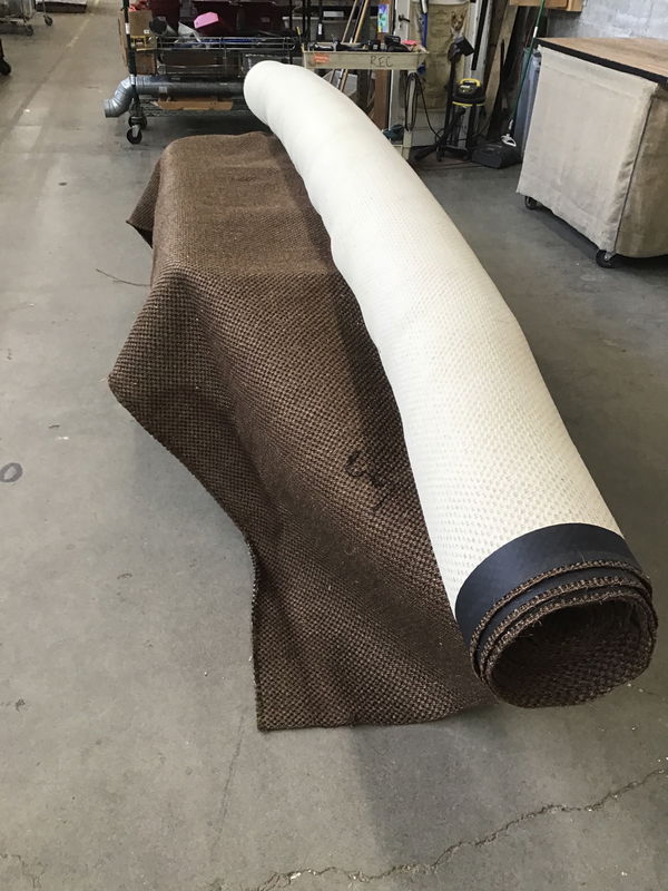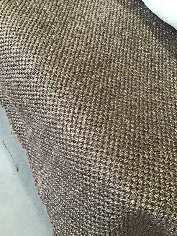 Huge 377 SF jute rug in a handsome chocolate brown. This was (lightly) used indoors but outer edges have heavy staining. See pictures. I don't know about you, but I love the feeling of bare feet on a jute rug. If you cut the stains off you could have a 23 x 12.5 ft rug left over.