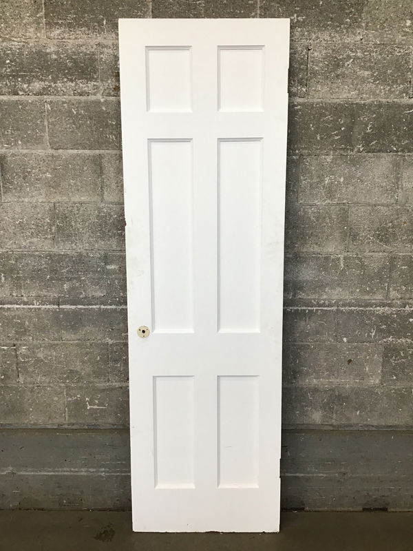 Six panel interior door. Has a few screw holes where coat hooks used to be on one side and could stand a new paint job, but in good shape otherwise.