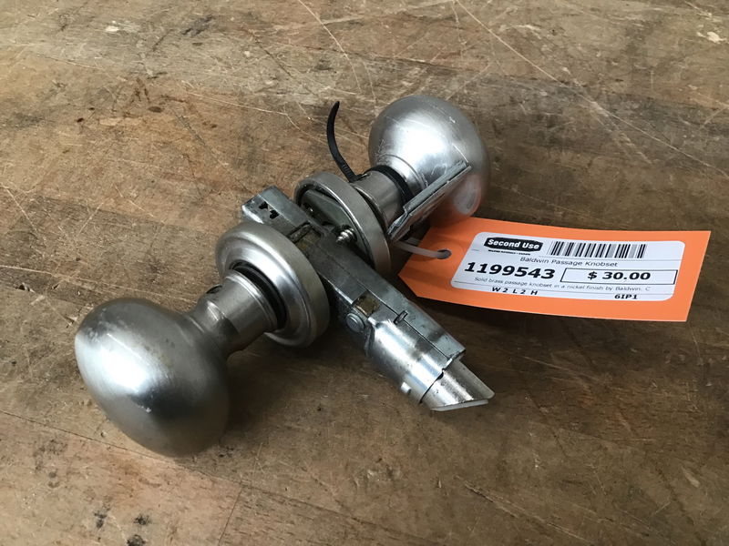 Solid brass passage knobset in a nickel finish by Baldwin. Comes with tube latch.