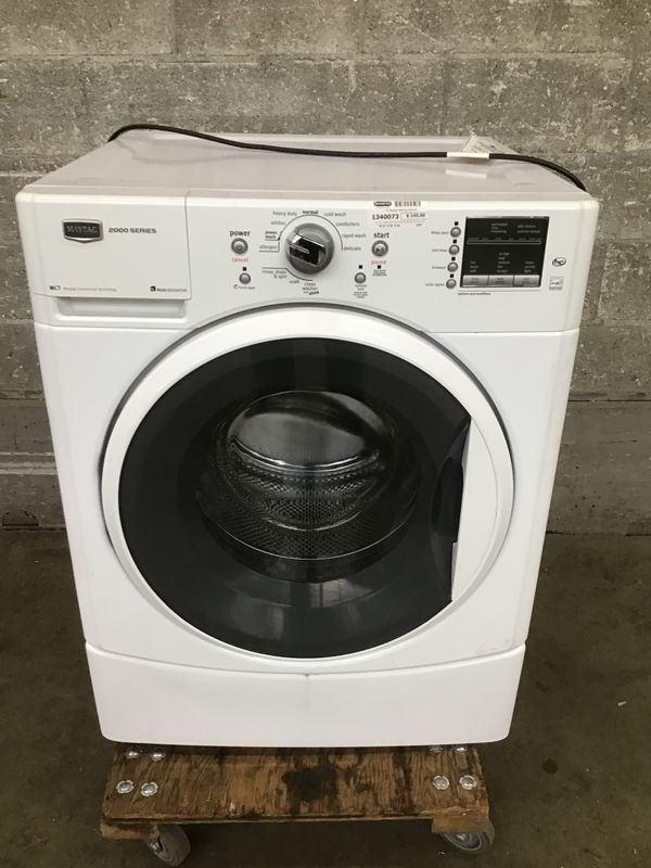 Ca. 2012 Maytag front load washing machine that looks used. Came from a whole house strip out done by our Salvage Services crew. Dash board lit up when plugged in. Ask about our return policy. Price reflects age and condition.