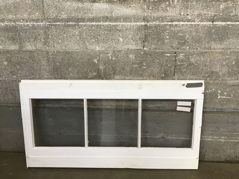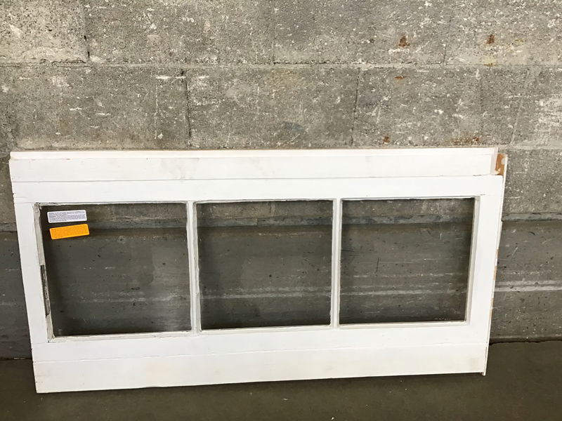 A humble window sash with three panes of glass. Sturdy frame with little wear and tear. Perfect for a cold frame greenhouse.