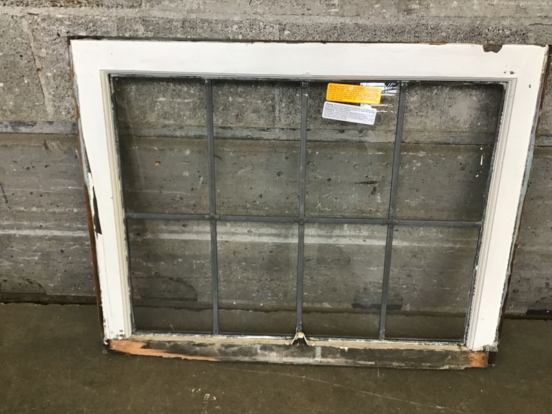 Vintage 8-lite leaded fir sash. Thickly painted but the glass is in tact.