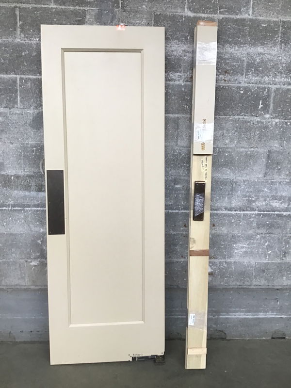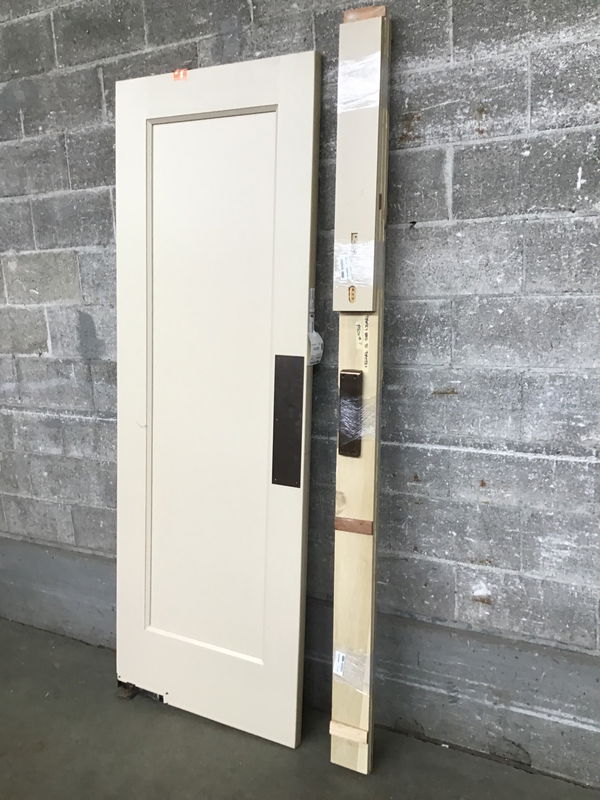 Recessed panel interior butler door that comes with a disassembled jamb and plates for covering the hinge hardware. This is exterior thickness but should not be used in an exterior application.
