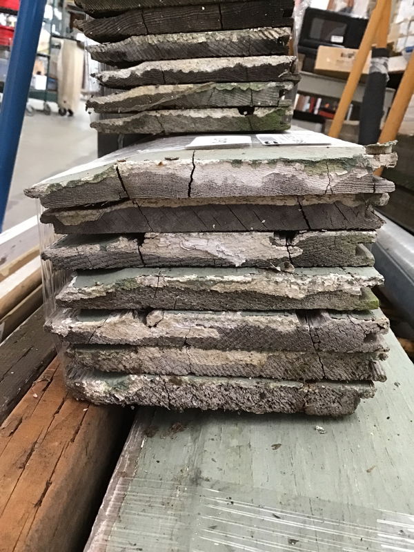 Bundle of approximately 150 LF of cedar siding with a scalloped cove edge, which we don't see all too often! This is thickly painted, splitting in some places & is a little rough and rowdy along the edges. It's probably best suited as a cool accent wall or perhaps the siding for your doggo's chateau going forward. Let us know how you use this unique siding by sending pictures to [email protected]!