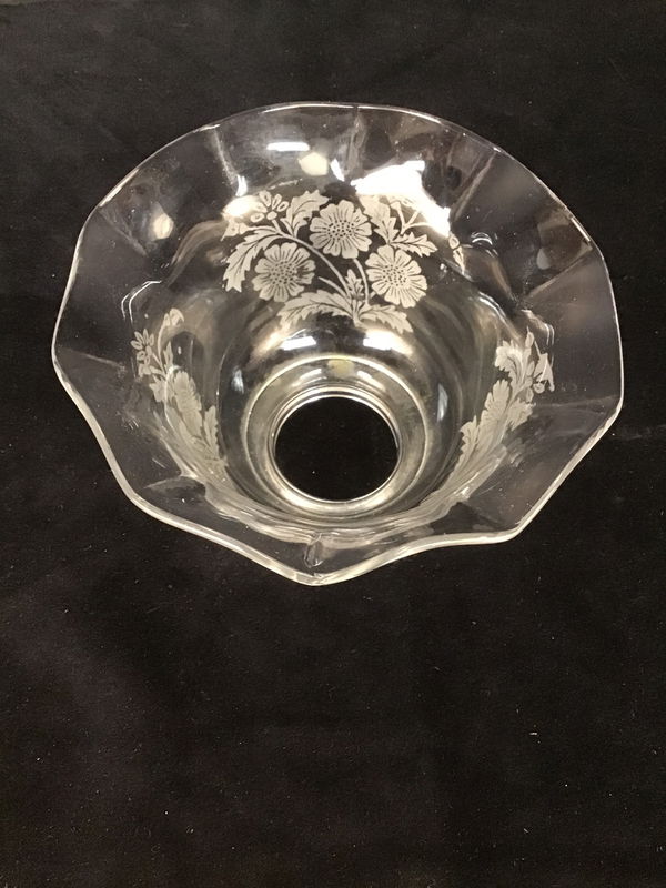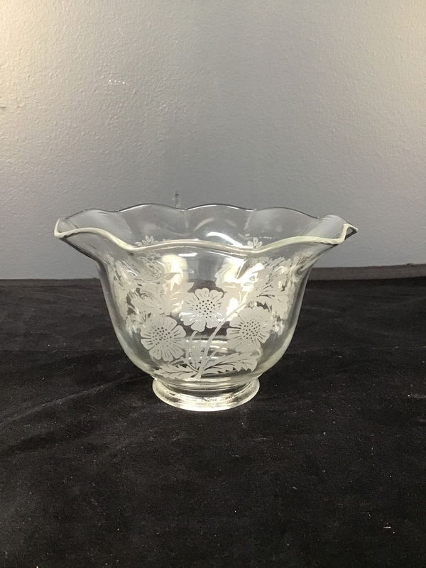 A beautiful antique etched glass shade with a sunflower pattern for a gas/electric light fixture.