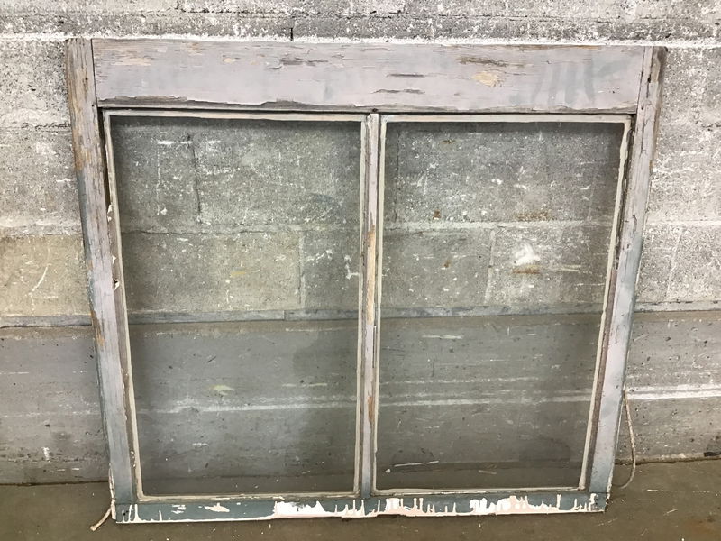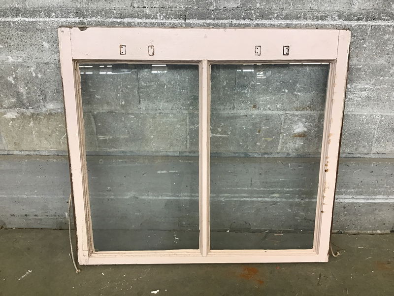 Large two pane wood window sash with a dusty rose paint job. Would be great for a greenhouse project!