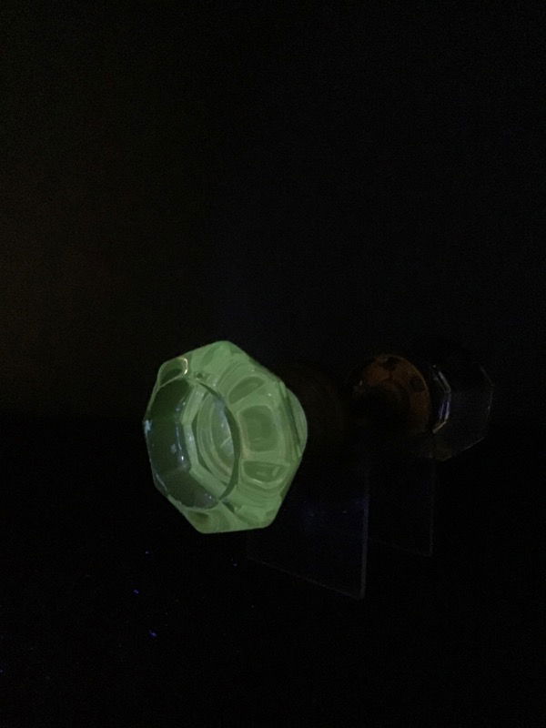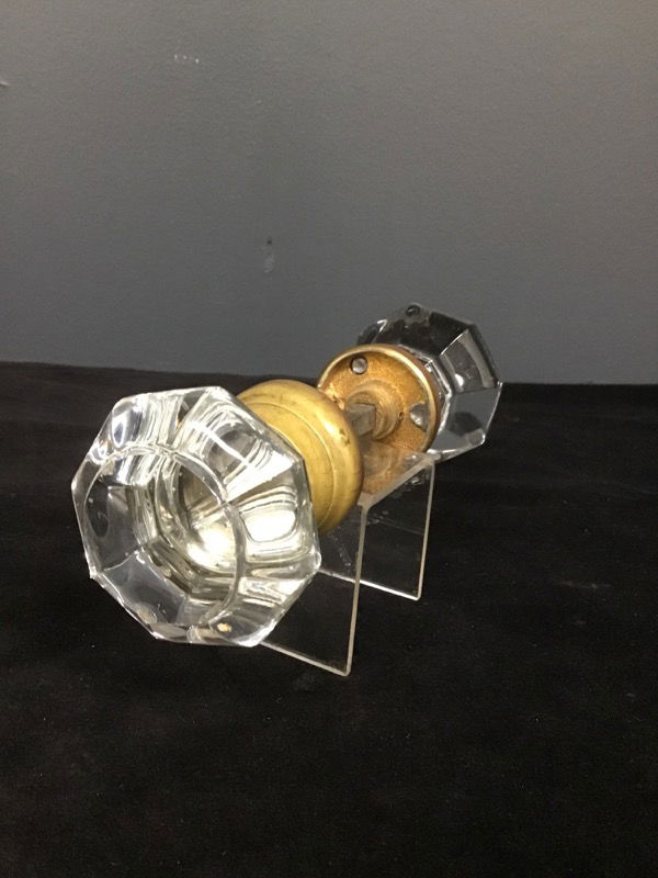 A set of glass knobs from the mid to late 1800s. These would have been in mansions, as the wealthy were the only ones who could afford to have glass door knobs back then. The glass has quite a bit of manganese oxide in it (that was used to make glass clear) so it glows a lovely green under UV 365nm light! One of the knobs has some chips on it. This is reflected in the price.