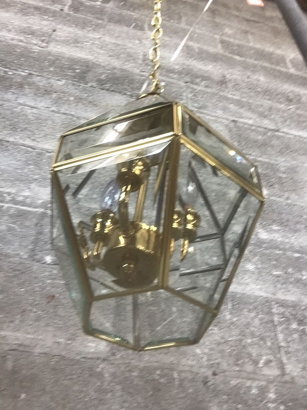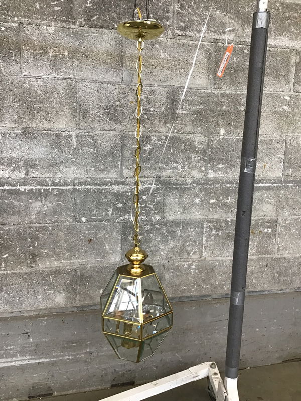Classic, small 1980's vintage brass n' glass pendant that appears to be in new shape, wiring looks good.