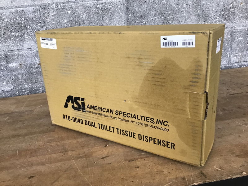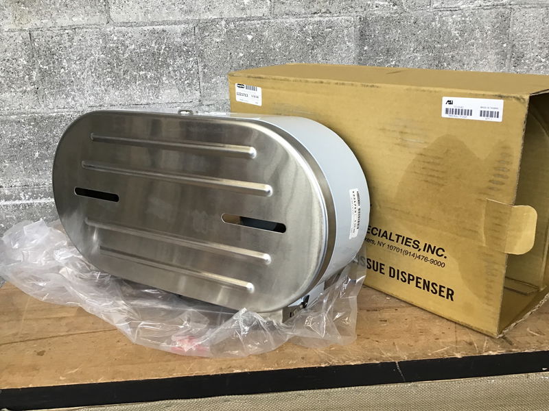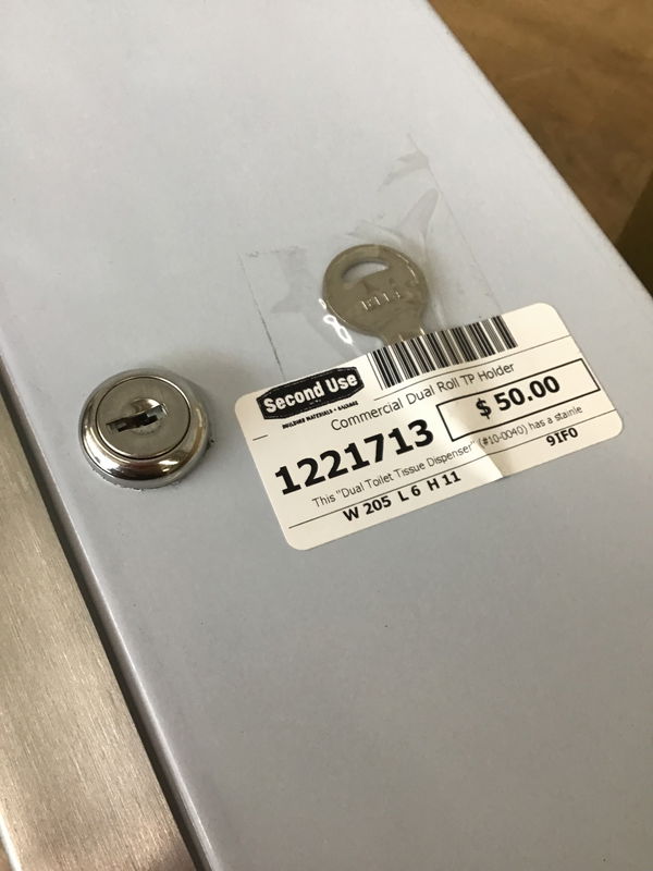 This "Dual Toilet Tissue Dispenser" (#10-0040) has a stainless steel front and key. New in box from American Specialties, Inc. and sells for $144 at most online outlets.