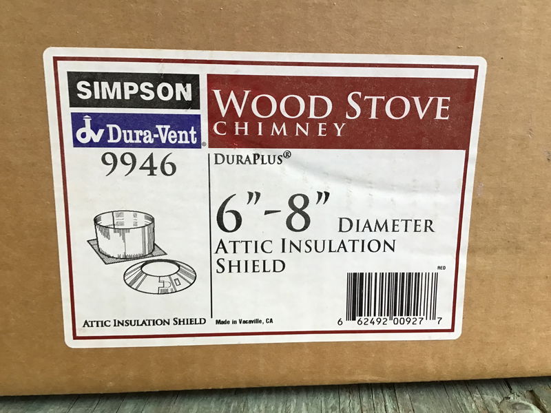 An attic insulation shield for a wood stove chimney from Dura-Vent, item number 9946. Looks to be unused.