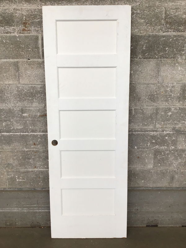 Primed masonite,recessed five panel interior door. Some minor cosmetic damage but nothing a little sanding and paint won't fix.