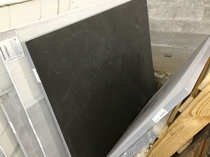 Piece of manmade stone with no finished edges. Dimensions listed are for approximate largest rectangle that could be cut from the piece.