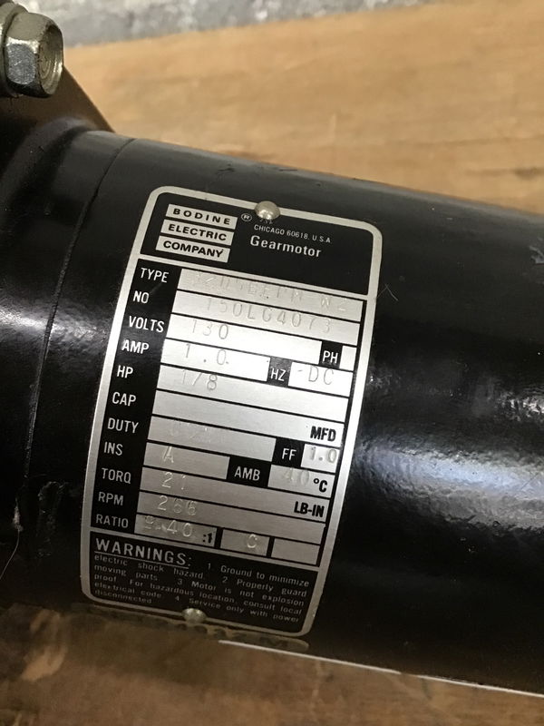 A little motor from Bodine Electric Company. Type 32D5BEPM-W2. 178 HP, 130v. Tested in our receiving department and appears to function!
