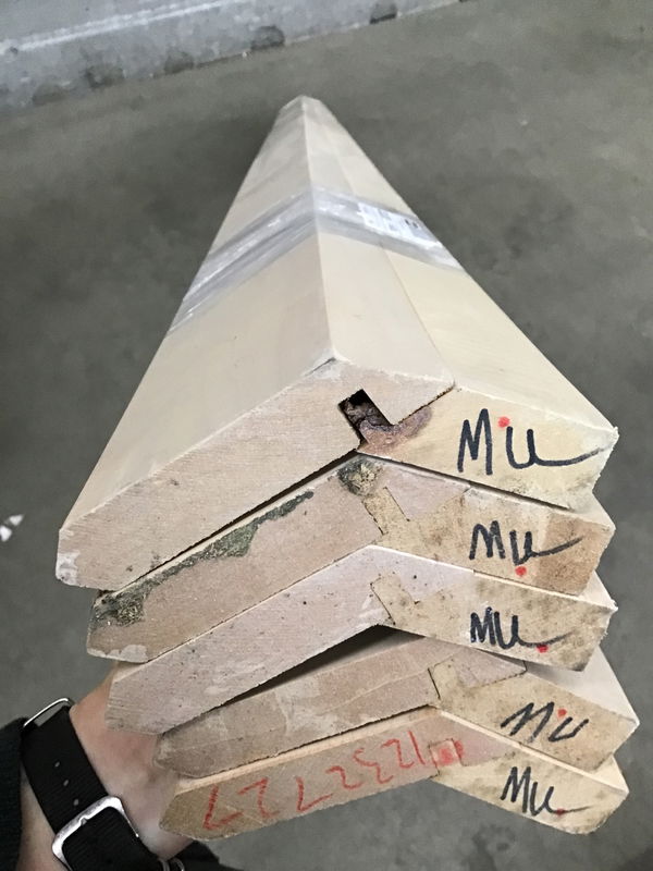 About 40 Linear Feet of ACM8 crown moulding in good shape. It's got a subtle coat to it, ready to be painted to match your kitchen or living room! Retails new for about $50 per 8 foot run, or $250 for the 40 feet here.