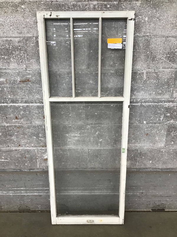 Vintage, four lite, craftsman style wood window sash with wavy glass.