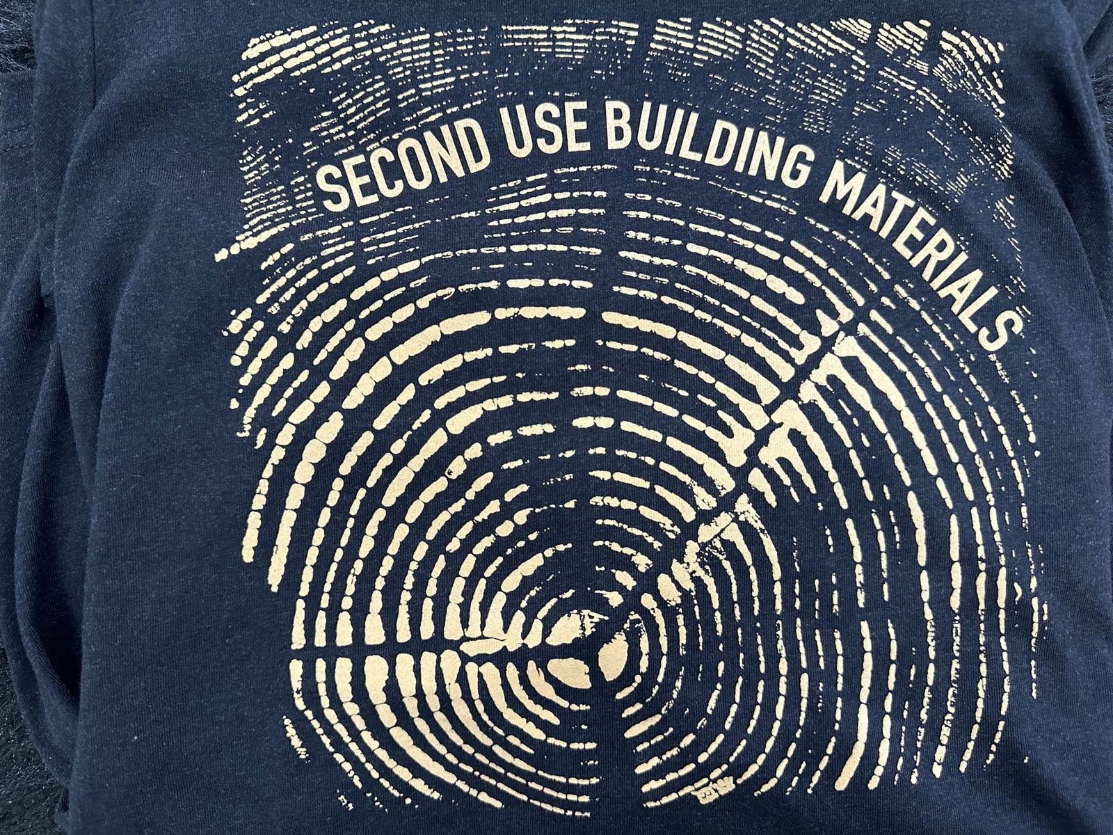L Second Use wood grain tee printed in 'Doe' on a Heather Black cotton/poly blend tee. This design comes from an ink print pulled off a salvaged beam end. Tee designed in house and printed locally. Make your friends all kinds of PNW jealous with this one!