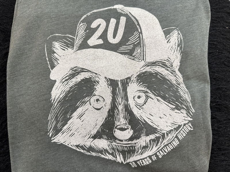 Celebrate 30 years of salvaging local history with this adorable little Trash Panda tee printed in 'Moth' on a super soft Heather Military Green tee. Designed in house and printed locally. Unisex L.
