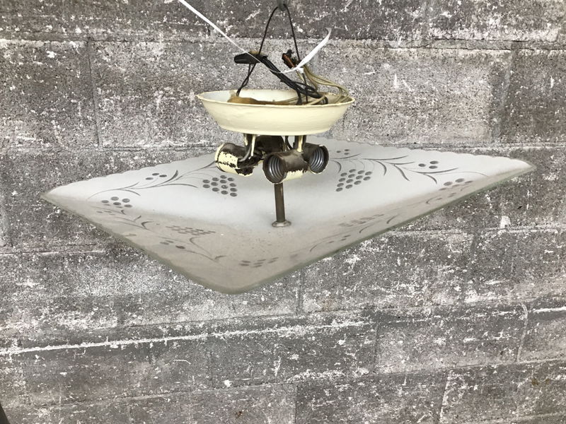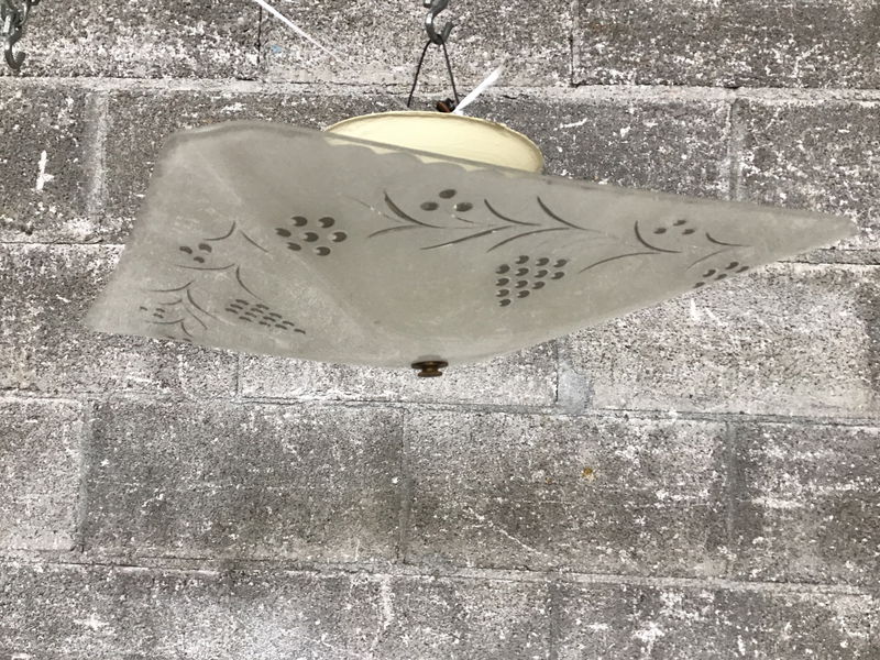 Nice looking vintage ceiling fixture with large glass shade and four bulb fitter. The wiring may need an update.