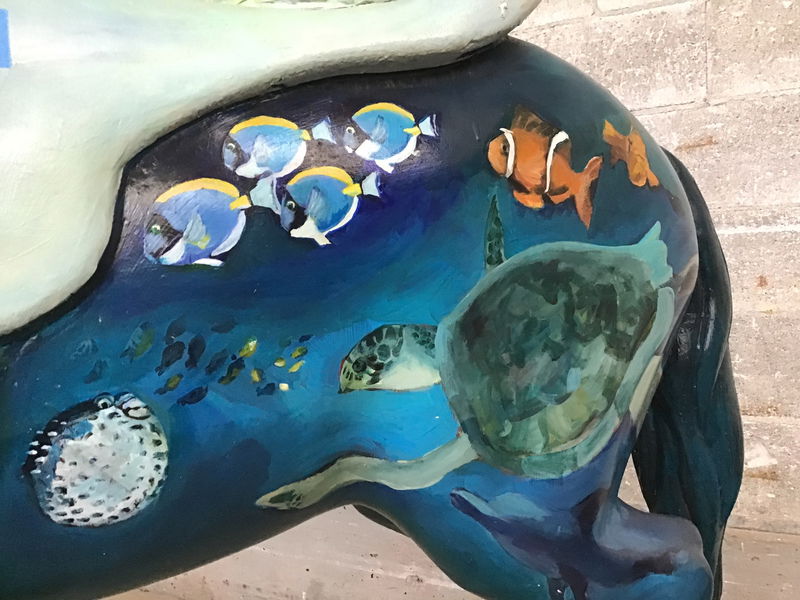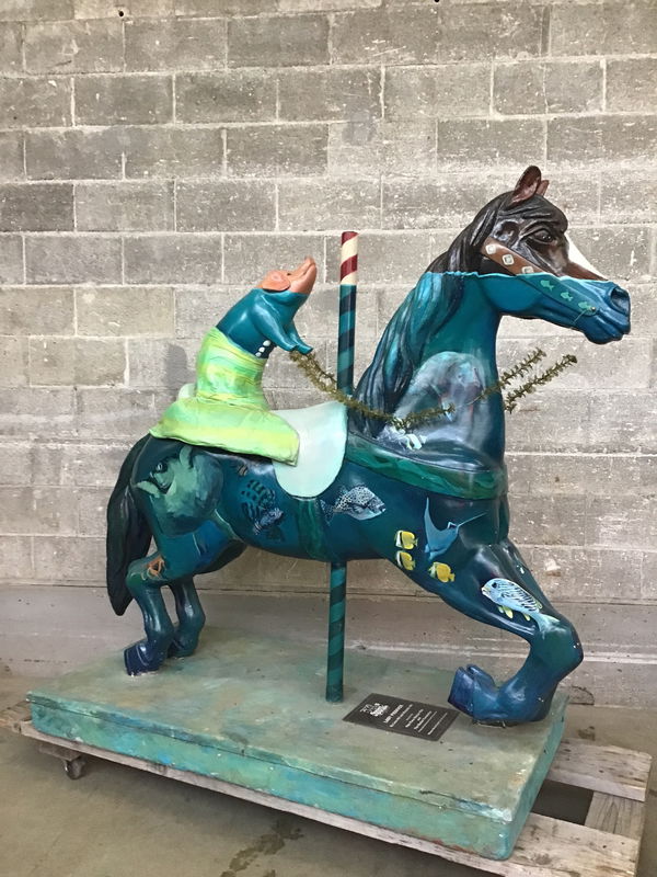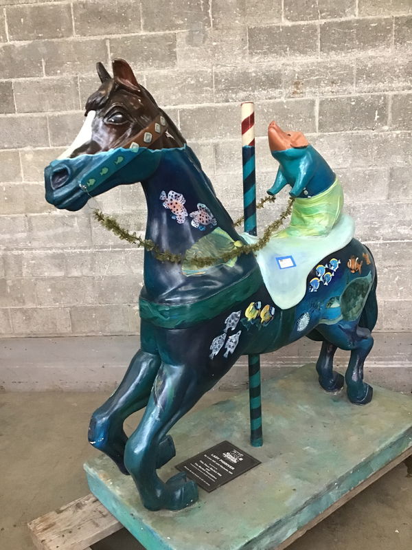 Where do I even start to describe something so beautiful? Lady Pigdiver is incredible. Crafted by local artists for Wells Fargo's Ponies on Parade, she is crafted from a decommissioned fiberglass carousel horse, meticulously hand-painted and mounted by none other than a mermaid piglet. This is truly a once in a lifetime opportunity to own one of the coolest pieces I've seem come through our doors.
