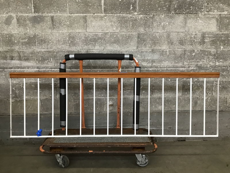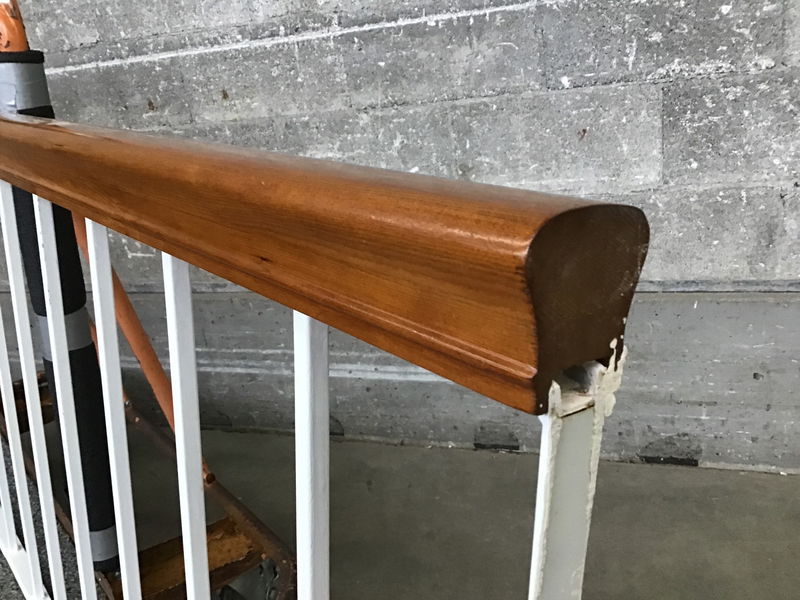 Super clean looking white steel railing with a breadloaf railing atop it. The baluster spacing may not be up to code, but the handsomeness of that stained fir handrail totally makes up for it!