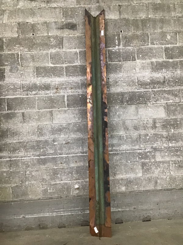 Would you like to add a touch of class to your roofing project? How about using a piece of copper for your valley. Has a 1" crease in the center to give you rigidity and the ability to vary your pitch. The edges have a 3" roll over. If you were to flatten this piece out, it would probably be about 18" wide. This is used material and has fastener holes.