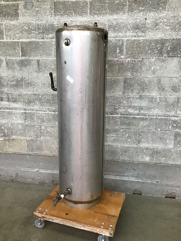 Add some BLING to your water catchment system with this non-ferrous water tank. It looks like it might be a repurposed water heater tank, or it might be a custom made vessel. There are a couple torch cut opening at or near the top. Has a spigot near the bottom to attach your hose. It might be stainless steel, but there's a chance it could be monel or some other type of copper/nickel alloy. Needless to say, you'll have the shiniest tank in the neighborhood.