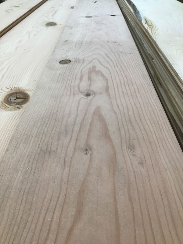 Douglas Fir tongue and groove paneling that was made from salvaged industrial wood beams. Made by Nelson Treehouse who had the TV show Treehouse Masters. This is extra stock from one of their treehouse builds. There are slight imperfections due to being from reclaimed beams, but it really is nice stock. Smooth on one face and roughsawn on the other, you can choose which side to use. The reveal is a true 8". In lengths from 10ft to 6ft. This is a bulk item. No holds please.