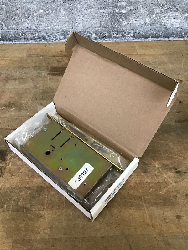 Baldwin brass finished pocket door mortise with pull, brand new, never used! Photo is representational of style, not color. See it retailing here.