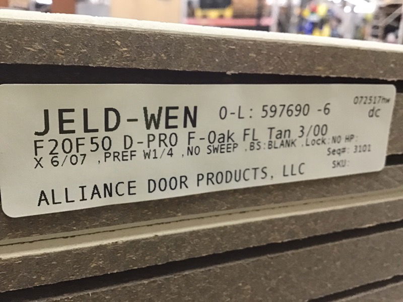 Flush face, faux oak grain, fiberglass exterior door that is undrilled-no hinge cuts or handle bores. Item may have cosmetic damage. Photo may be representational.