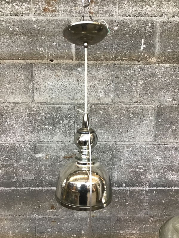 Polished nickel pendant light with modern industrial styling. The hanging height can be easily adjusted by lengthening or shortening the cord.