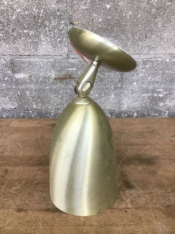 A classy wall sconce with mid-century-modern vibes. Has an adjustable base perfect for putting the spotlight on a shelf of knick-knacks. Wiring looks to be in good condition. Takes one standard base bulb.