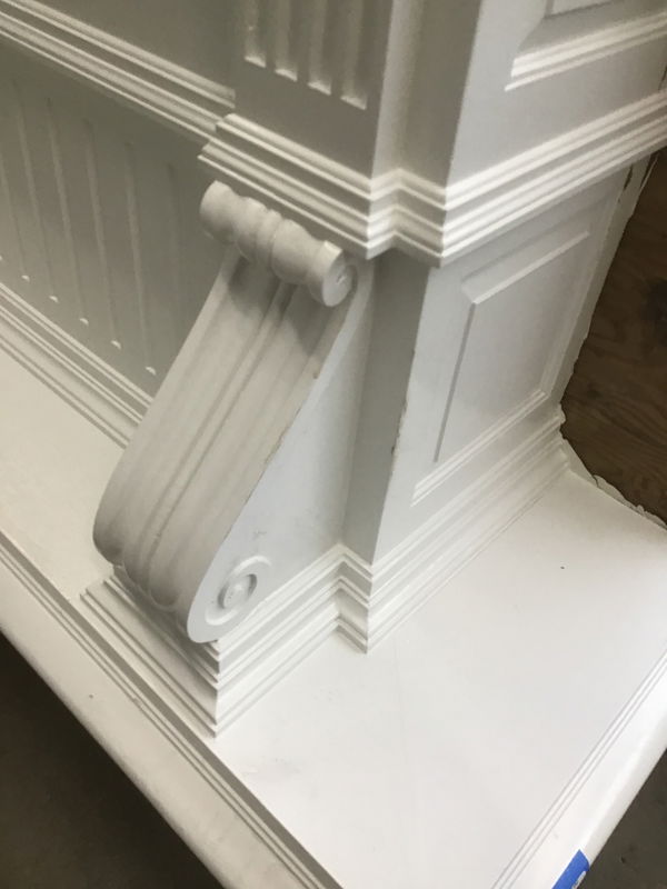 At least the paint job looks clean on this stately oak mantel, but you have to wonder what made someone paint it in the first place???