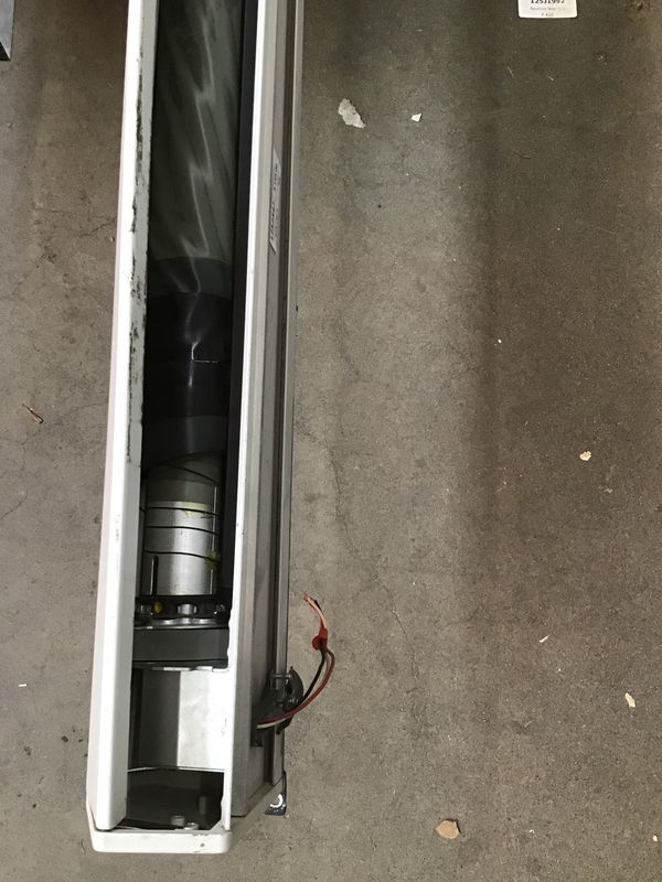 I'm guessing if my coworker invested in this retractable projection screen, they must have knew the supplier and found out it works. Unfortunately we're not going to have to space to wire it and drop it down to measure screen size. But I'd guess there's at least an 8' wide screen x 6" tall or so.