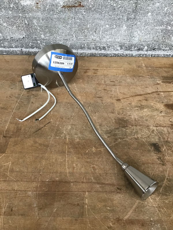 Sleek ceiling light with a domed canopy and flexible stem. The small bulb is deceptive - quite bright when wired up.