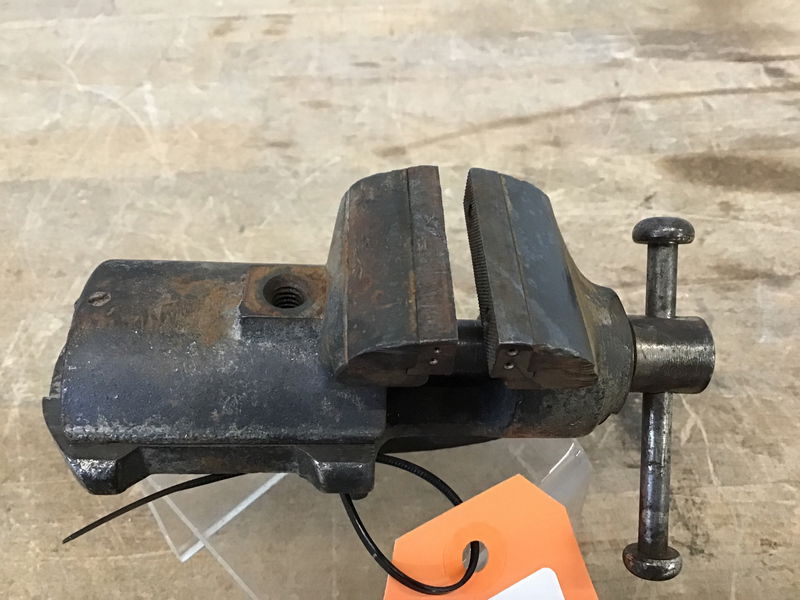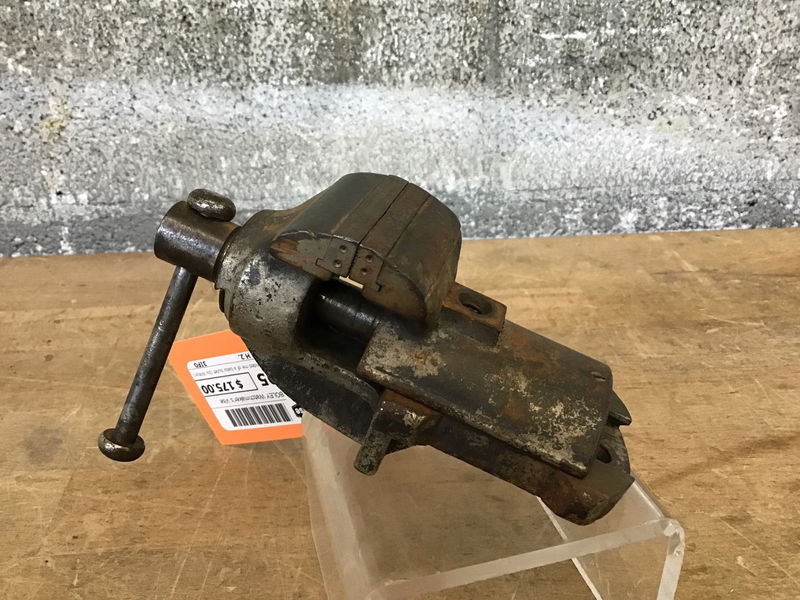 When this tiny vise reminded me of a baby bullet (by Wilton) vise, I was down the rabbit hole and sucked one of my coworkers in on the task, as well. We finally were able to make out G. Boley on the top of the front jaw to figure out what it is. Turns out this 1 3/4" jaw vise is for jewelers and watch/clock makers. It is missing a set screw behind the back jaw, but it still seems to function as it should, and, DAMN, it's cute.