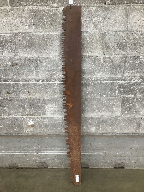 Antique handsaw blade. Great for rustic wall decor in a workshop or bar.