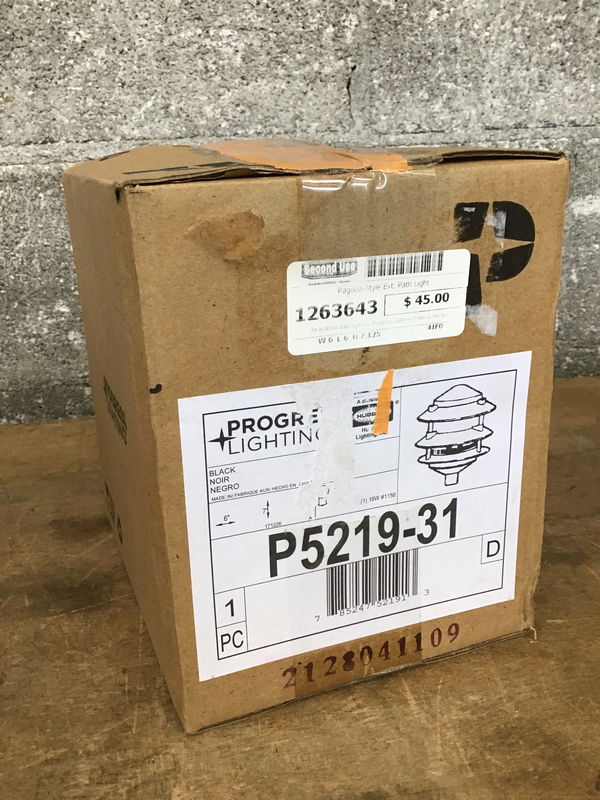 An exterior path light by Progress Lighting fresh in the box, with wiring, stake, and all. Retails new for about $70.