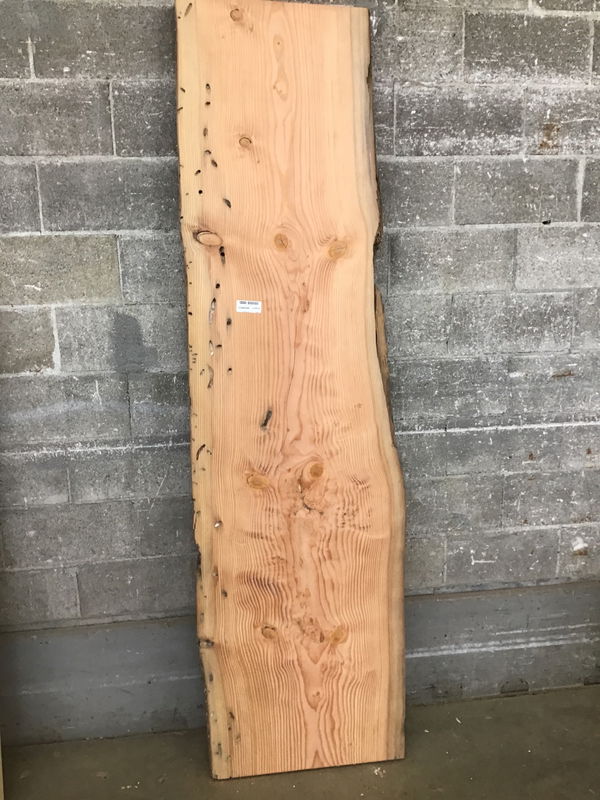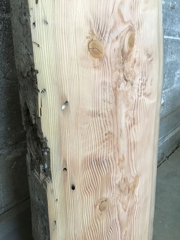 Locally milled & kiln dried. Sanded to 220 grit on one face. Tapers in width from 25" to 21". These have amazing bore channels that come from the notorious teredo clam. These saltwater clams spend their entire lifespan in these logs creating their tunnels that rarely intersect. The raw stock logs (before milling) originally used as boom surrounds in antiquated timber transport. These logs used to be left to rot in coastal towns before our supplier took it upon himself to repurpose them. Very unique stock, teeming in NW history.